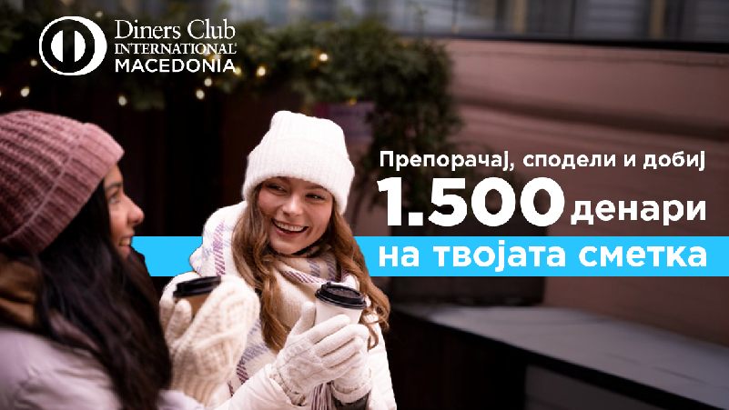Препорачај пријател да стане Diners член и добиј 1.500 денари на твојата сметка за секоја успешна препорака.